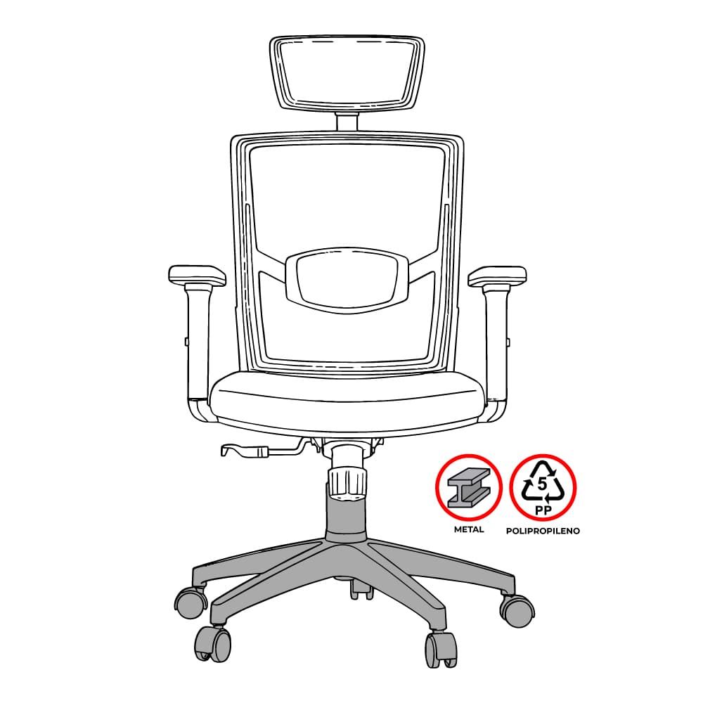 ![]() | Base y estabilidad | Base de 5 aspas con rodachinas | Evita el volcamiento y mejora la seguridad del usuario. |