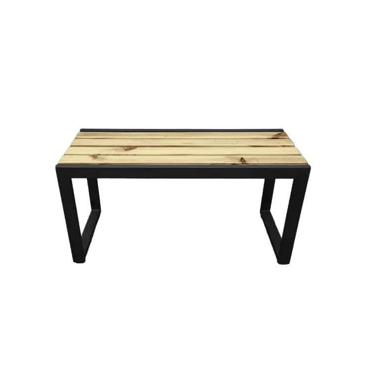Elaborada en tubo rectangular recubierto en pintura electrostática y superficie en madera lacada al natural. Ideal para uso en vestidores, camerinos, centros deportivos, centros comerciales.