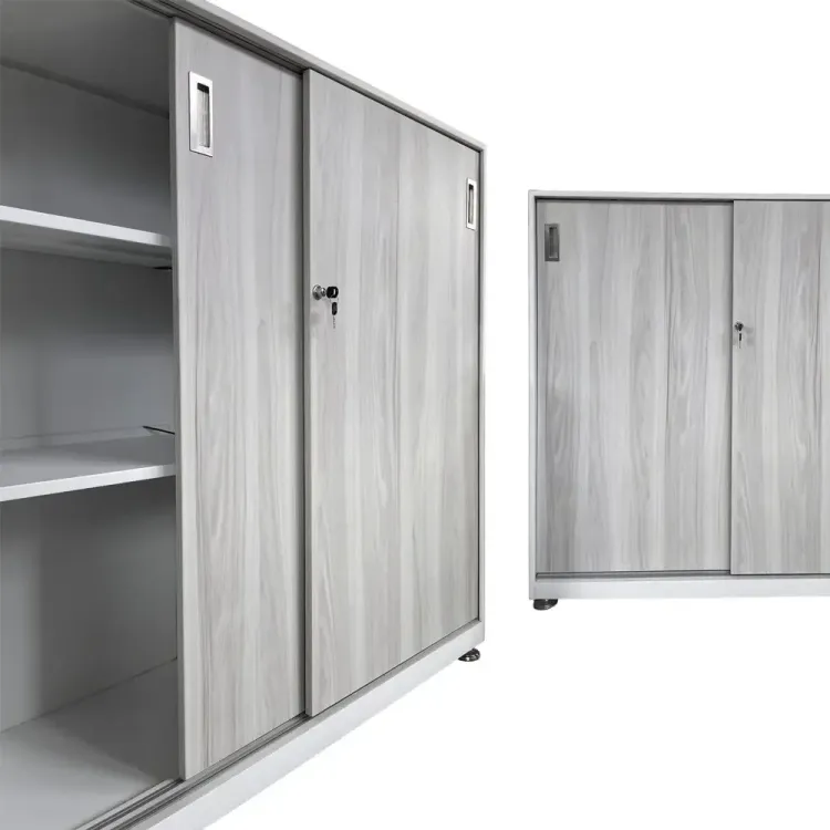 Biblioteca Mint con estructura metálica y puertas enchapadas en fórmica. Cuenta con entrepaños ajustables, chapa de seguridad y acabado en pintura electrostática. Ideal para oficina o espacios modernos.