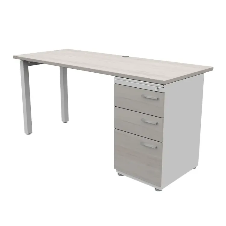 El Escritorio Blanco Maka es una opción versátil y sofisticada para oficinas y espacios de trabajo. Su diseño limpio y minimalista, con una estructura metálica resistente, garantiza durabilidad y estabilidad. La cajonera con frente en madera no solo aporta calidez, sino que también ofrece almacenamiento práctico para mantener el área organizada. Su enfoque modular permite adaptarlo a distintas configuraciones según las necesidades del usuario. Además, su acabado en escritorio blanco aporta amplitud y luminosidad al entorno, convirtiéndolo en un escritorio para computadora ideal dentro de la categoría de escritorios modernos.