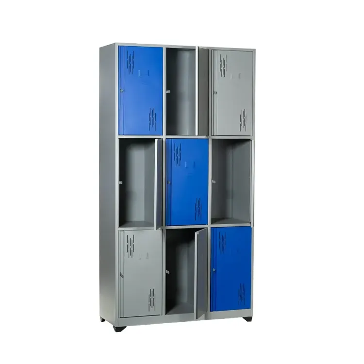 Casillero metálico de 9 espacios. Ideal para el almacenamiento de elementos y dotación. Este locker cuenta con un fondo de 40cm que permite guardar cascos de moto.