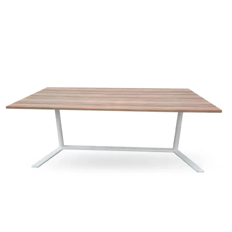 La Mesa de Juntas MINT 10 puestos ofrece diseño moderno y estructura firme para espacios de trabajo colaborativos. Su amplia superficie en fórmica de 25 mm permite realizar reuniones cómodas con excelente distribución. La base metálica con niveladores asegura estabilidad incluso en pisos irregulares.