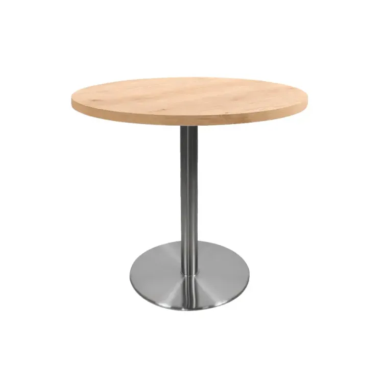 La Mesa Delta Redonda Base en Acero es una opción resistente y elegante para mesas de restaurante y mesas para cafetería, con acabado cromado impecable.
