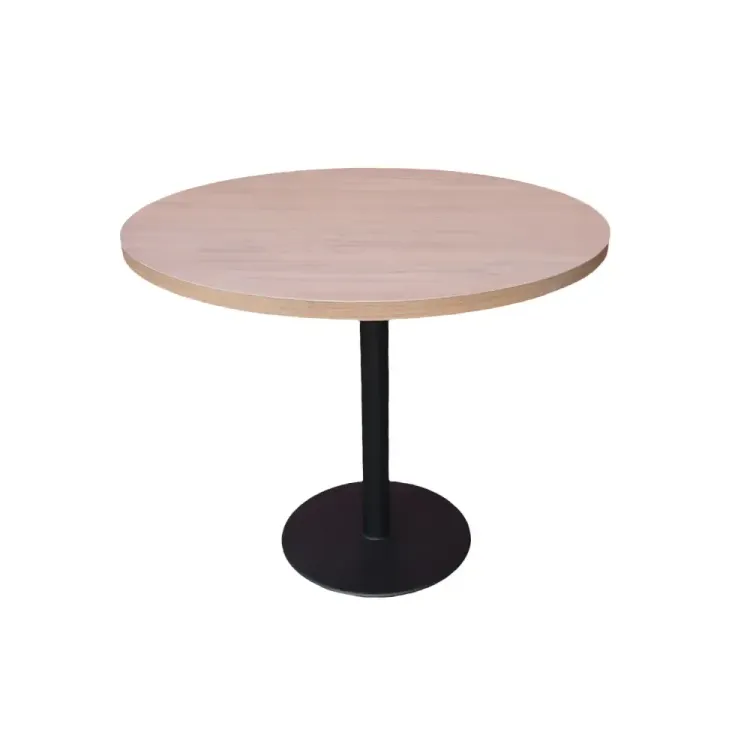 Nuestra Mesa Redonda 1 m en expresso y estructura pintada es la opción ideal de mesa de restaurante y mesas para cafetería que buscan resistencia y diseño limpio.