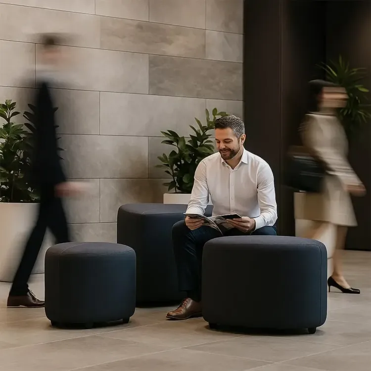 Agrega estilo y funcionalidad a tus espacios con nuestro Puff Petra modular de diseño orgánico. Su forma curva tipo gota y su estructura acolchada brindan comodidad y un toque contemporáneo ideal para oficinas, coworkings, salas de espera o espacios colaborativos. Tapizado en tela Vértigo de Nuvant, un textil de alta resistencia con tecnología antifluido, fácil limpieza y un acabado texturizado que aporta elegancia.