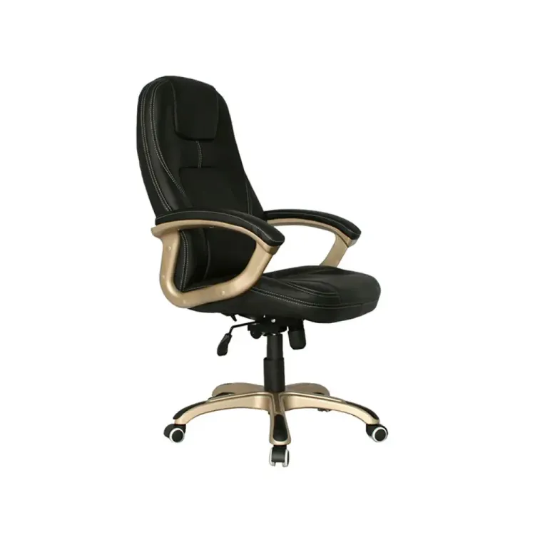 Silla de Escritorio Bélgica Alta ejecutiva y ergonómica. Espaldar con bastidor interno en madera, acolchada con espuma de alta densidad y tapizada en cuero sintético de excelente calidad. Brazos fijos con cojines acolchados y estructura en nylon. Silla ideal con mucho estilo para espacios concurridos y de alto tráfico.