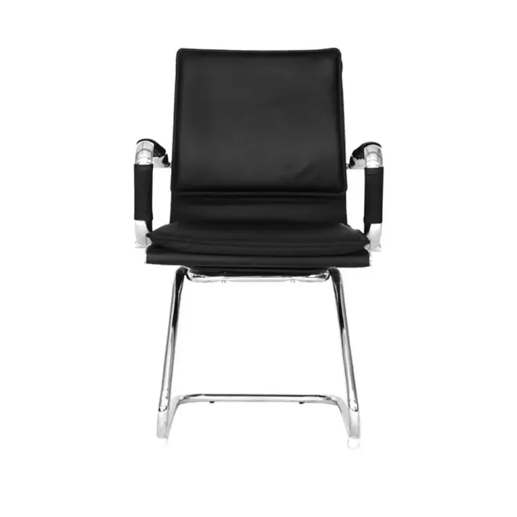 Silla Fija Alemania tipo interlocutora de lujo; con estructura metálica cromada, asiento y espaldar con espuma de alta densidad y tapizada en cuero sintético. Ideal para oficinas ejecutivas.