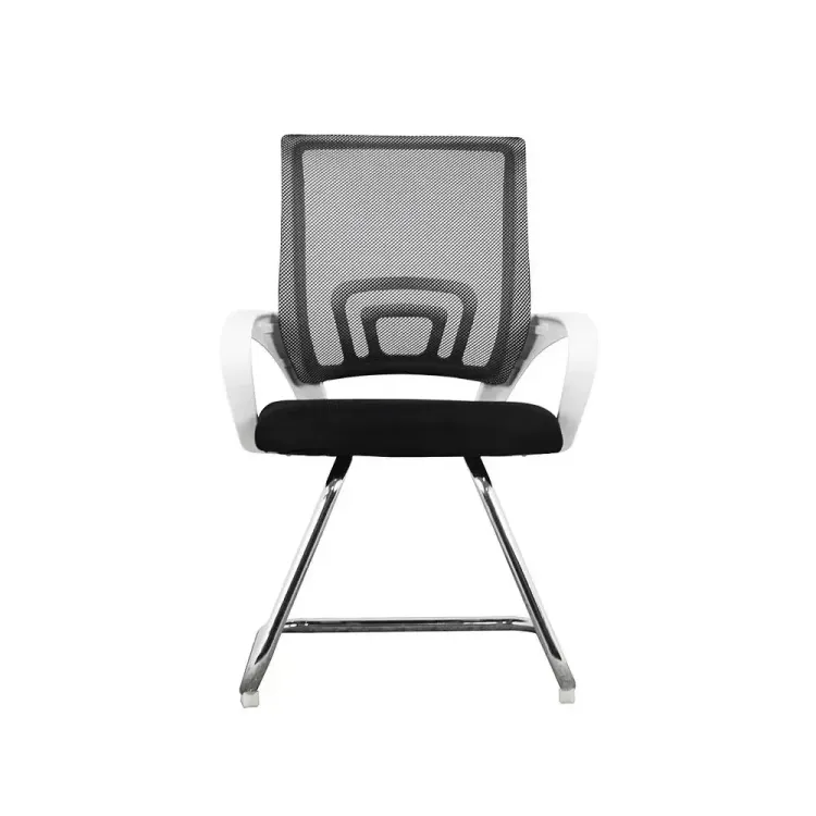 Silla Fija Atlanta Blanca; estructura en tubo metálico cromado, espaldar en malla antitranspirante. Ideal para oficinas gerenciales y universidades.