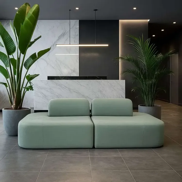 Tapizado en material de alto tráfico y fácil de limpiar, lo que lo convierte en una opción ideal para recepciones, casas, oficinas, hoteles y showroom, entre muchos otros lugares.