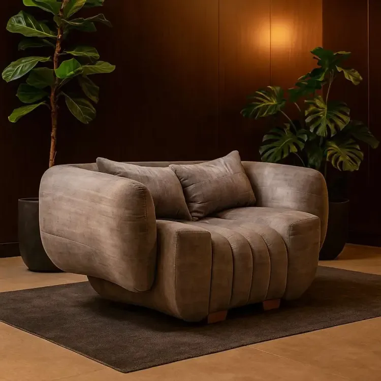 Tapizado en material de alto tráfico y fácil de limpiar, lo que lo convierte en una opción ideal para recepciones, casas, oficinas, hoteles y showroom, entre muchos otros lugares.