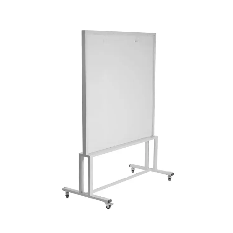 Tablero Móvil blanco con tres pisa papeles en la parte superior. Esquineros en polipropileno. Ideal para instituciones educativas, colegios y escuelas. Éste producto cumple con los requisitos del manual del ministerio de educación Colombiano.