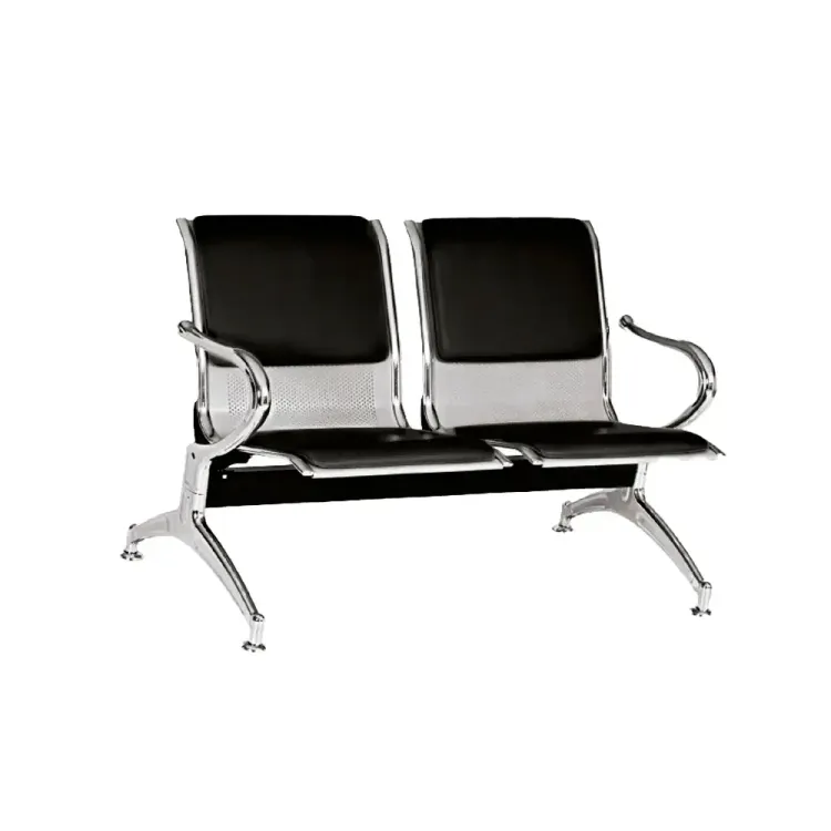 Con patas cromadas para sala de espera tapizada en cuero sintético. Reposa brazos en cada extremo. Ideal para hospitales, clínicas, centros médicos entre otros
