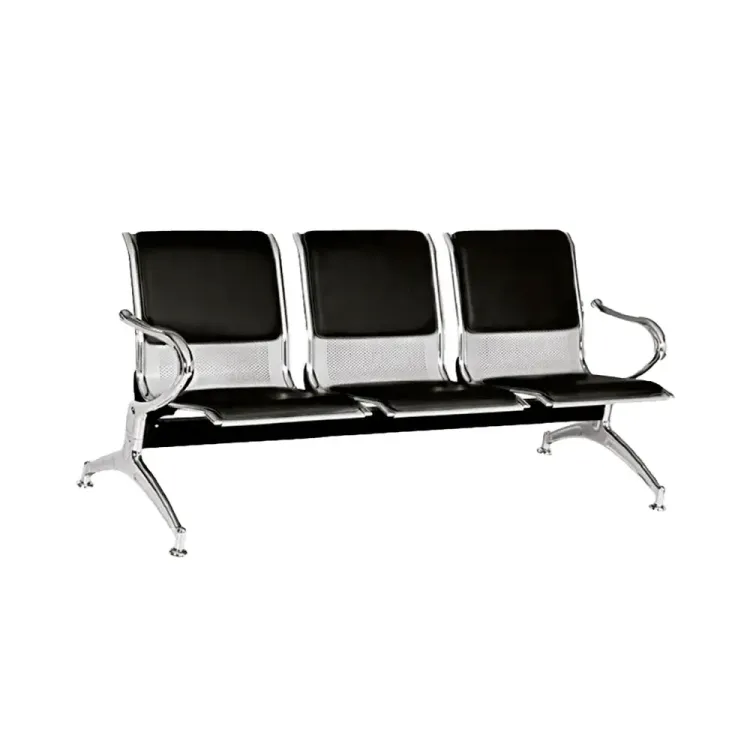 Ideal para sala de espera; con estructura en acero cromado espaldar y asiento con espuma y tapizada en cuero sintético.