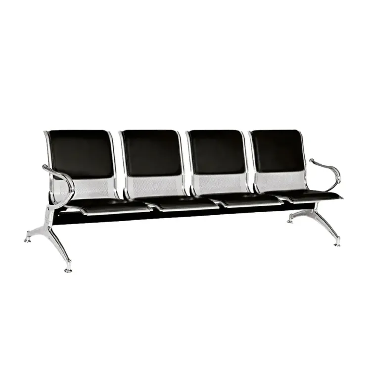 Ideal para salas de espera. Estructura metálica cromada, asiento y espaldar tapizados en cuero sintético . Reposa brazos en los extremos.